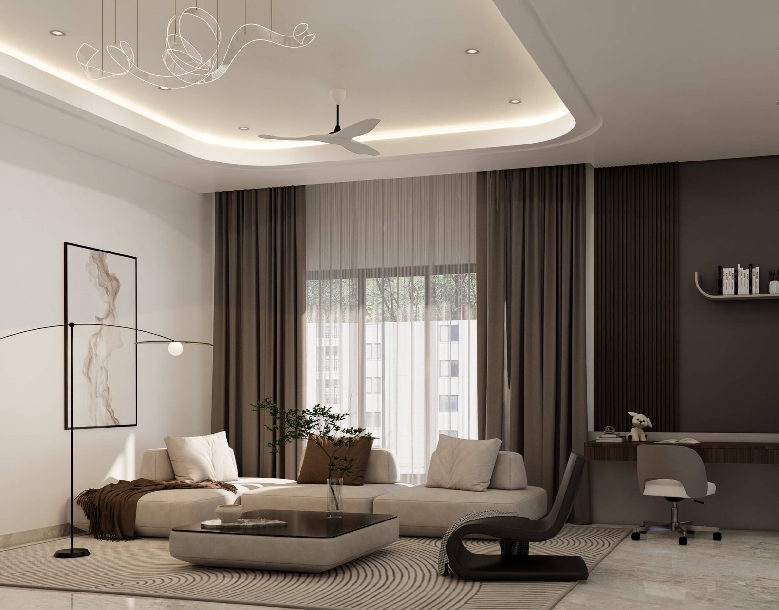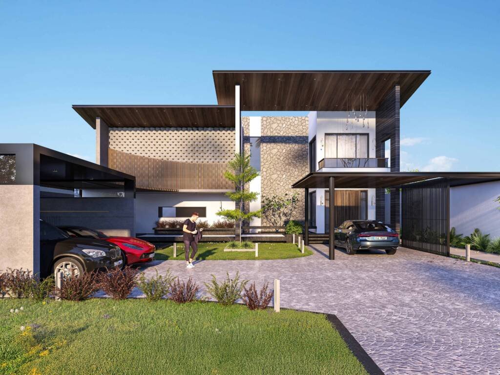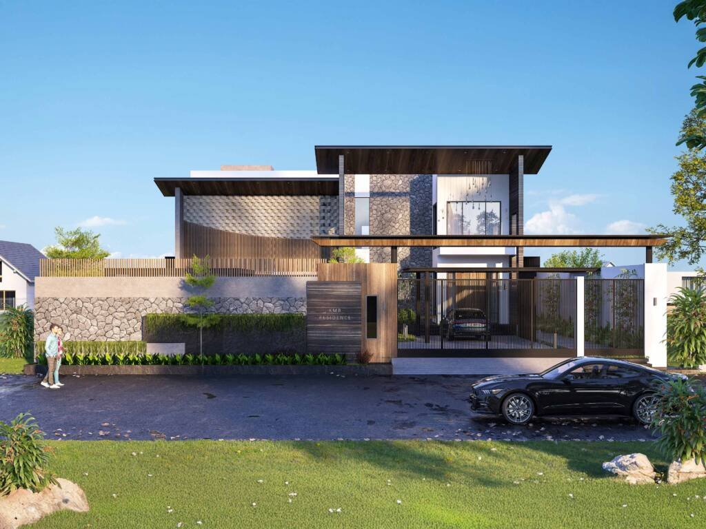 Spatial planning balances openness with definition, allowing fluid movement throughout the home. The transition between architecture and landscape is carefully curated through courtyards, landscaped buffers, and shaded pathways that soften the built form and weave nature into daily living. Beyond a residence, KMB Haus is a cohesive living environment—where form, material, and light converge to create an atmosphere of calm, refinement, and timelessness.