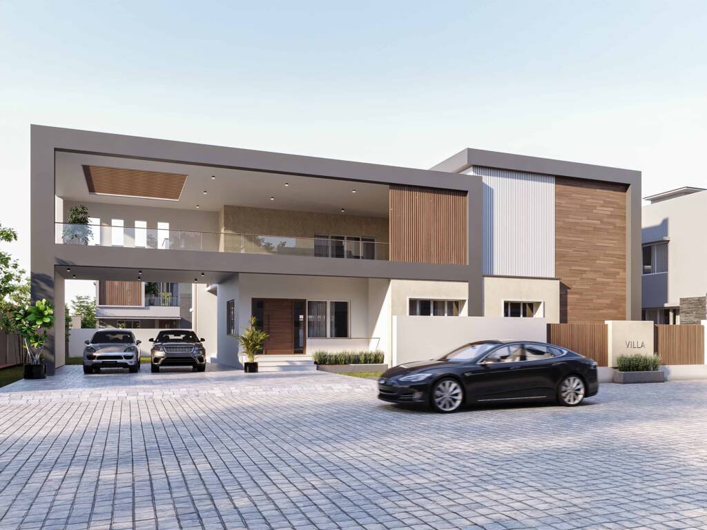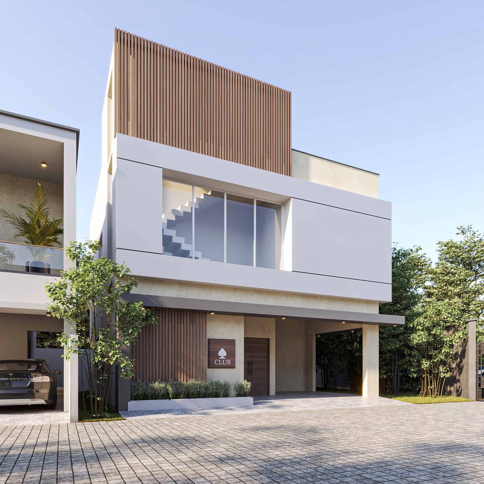 Sanbrix Adhira is a villa development defined by clean geometry, balanced massing, and a restrained material palette. The architectural approach emphasizes natural light, cross ventilation, and privacy through recessed balconies, vertical fins, and shaded openings.